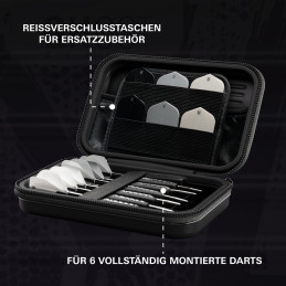 Platz für 6 vollständig montierte Darts – XL Stauraum, keine Kompromisse